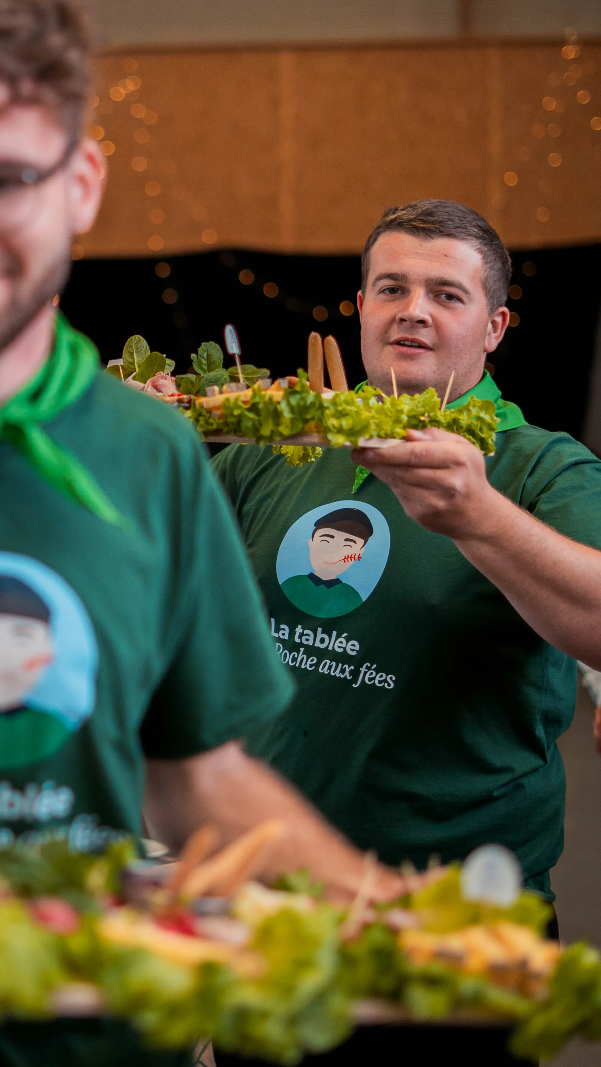 La création de La Tablée de la Roche aux Fées a émergé à la fin de l’année 2024, lors d’un moment convivial entre amis après un événement sportif. Autour d’un verre, l’envie de rassembler, de partager un repas et de créer un véritable banquet s’est imposée presque comme une évidence, un peu comme si la magie du lieu nous avait soufflés cette idée.